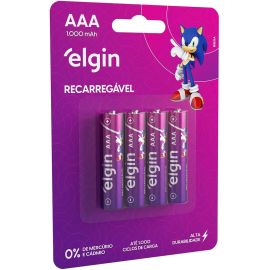 Pilha recarregável AAA 1000mAh Elgin com 4 unidades Palito