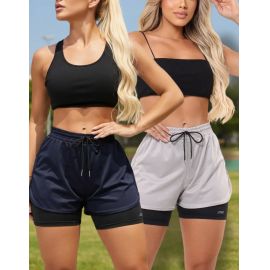 Kit 2 Short Duplo Compreensão Fitness Bermuda Feminino