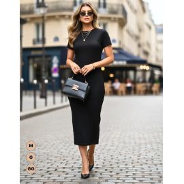 Vestido Midi Canelado Fenda Fashion Acinturado Modelador