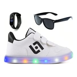Tenis Infantil De Led Casual Escolar Meninos Oculos Relogio