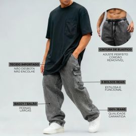 Calça Jeans Cargo Masculina Streetwear Preta Mescla 34 Ao 44