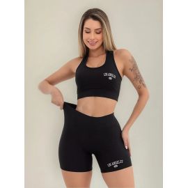 Conjunto Top Shorts Feminino Los Angeles Slim Moda Academia