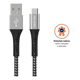 Cabo Micro Usb 2.0 Nylon Trançado suporta até 10.000 dobras 1,2 Metros velocidade 480Mbps Geonav Preto