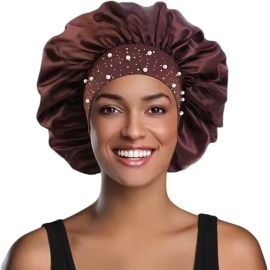 Touca de Cetim Decorada com Pérolas Aba Larga com Elástico