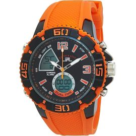 U.S. Polo Assn. Relógio esportivo masculino US9483 com pulseira de silicone laranja