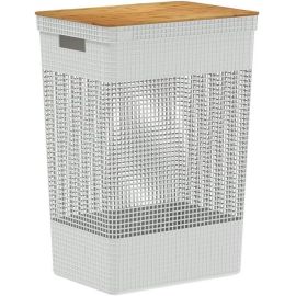 Ou Cesto de Roupas com Tampa de Bambu 49L Branco Oceano Linha Grid