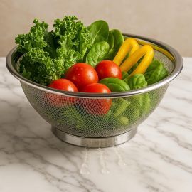 Escorredor de Alimentos/Macarrão Multiuso em Aço Inox, 28cm