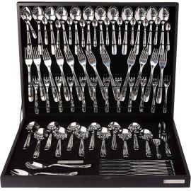 Faqueiro Maresias Aço Inox com Estojo de Madeira, 76 Peças, Prata, Tramontina