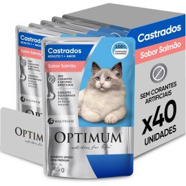 Pack Ração Úmida Optimum Sachê para Gatos Adultos Castrados Sabor Salmão 85g - 40 unidadaes - [RECORRÊNCIA]